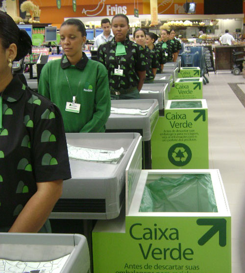 O Caixa Verde possibilita aos clientes destinarem para reciclagem, em urnas instaladas ao lado dos caixas nos supermercados, embalagens secundárias de produtos que não precisam levar para casa, como caixas de pasta de dente.
